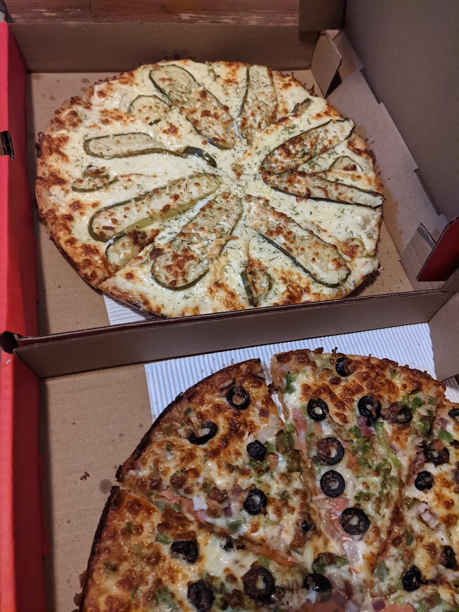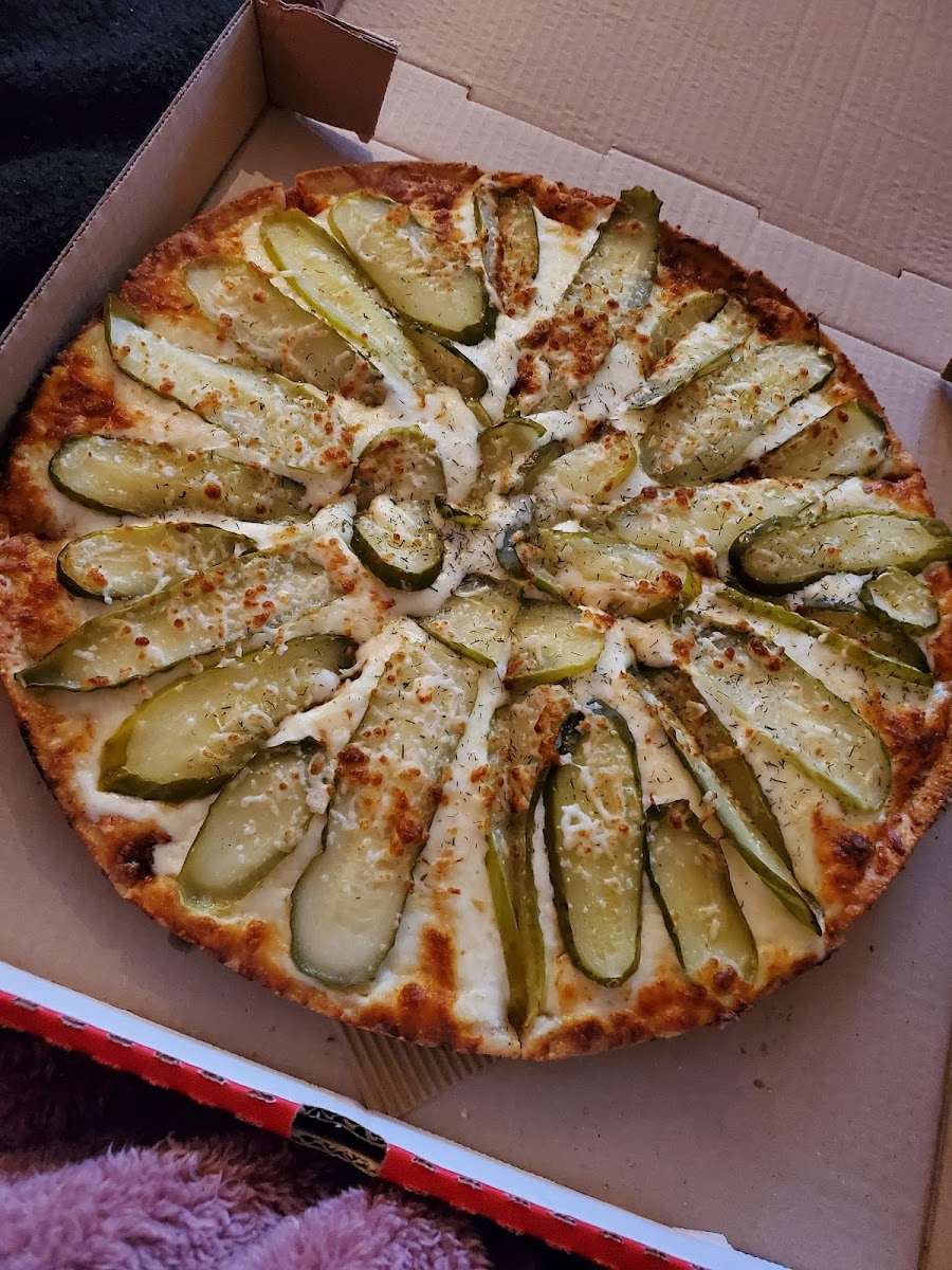 The dill pickle pizza is a must try & is famous in the community all the pizzas are great though! The staff is also very friendly best pizza in town!